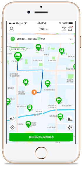 ‘为城镇居民、外卖/快递配送员、跑男等电动车用户提供换电车\电池租用业务,通过矩阵式分布的服务网点、智能换电柜为其提供便捷、实惠的满电电池更换服务’